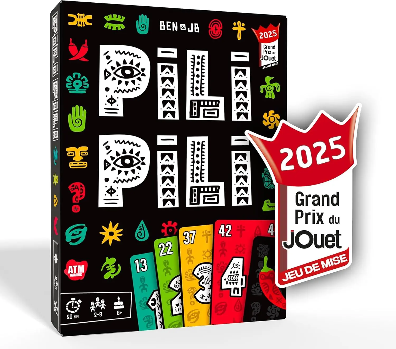 Récompenses et reconnaissance : Primé dans plusieurs festivals de jeux de société, Pili Pili est recommandé par les ludothèques et les enseignants pour développer les compétences mathématiques (calcul mental, probabilités) et sociales (anticipation, lecture des intentions d'autrui).