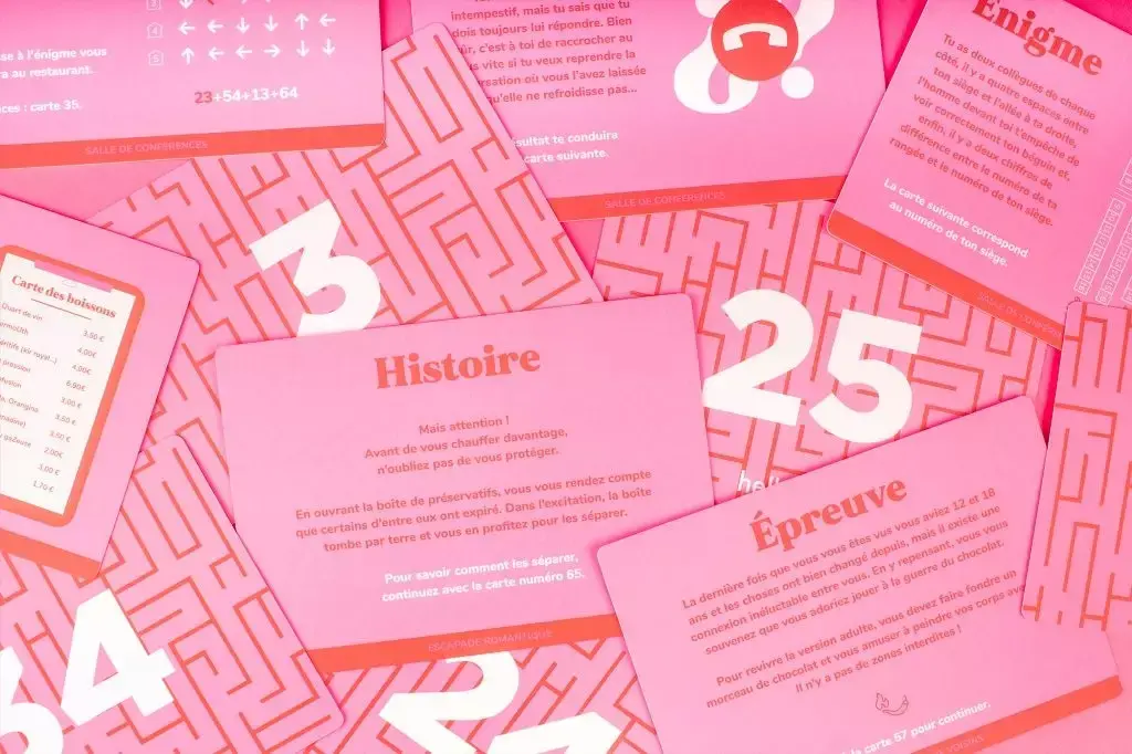 Le principe est simple mais ingénieux : résolvez des énigmes pour progresser dans l'aventure et découvrir des épreuves qui augmentent progressivement l'intensité de votre soirée. Chaque énigme résolue dévoile un numéro qui vous guide vers le prochain défi, créant une montée en température naturelle et progressive.